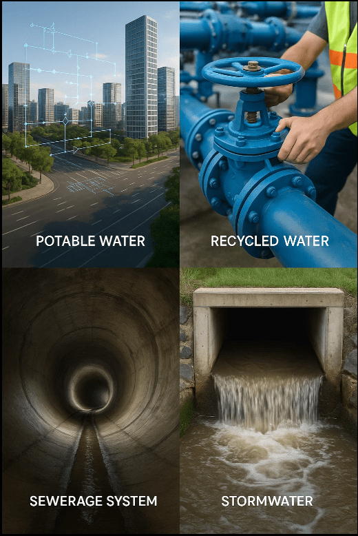 - Sustainable and flexible designs integrating potable, irrigation, and firefighting systems for urban and industrial developments